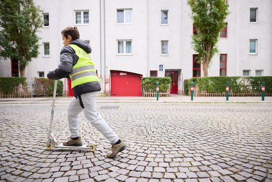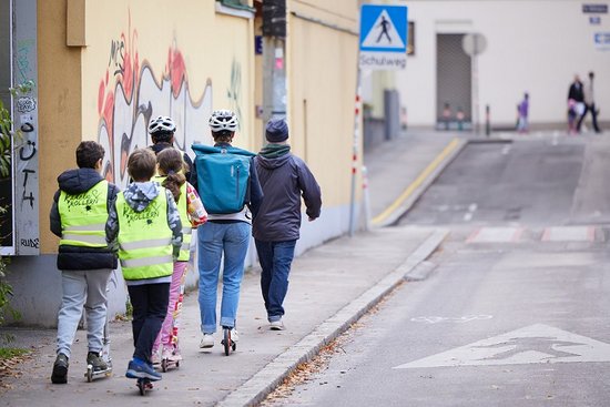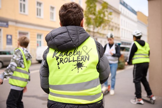 Beim Rollerkurs für Schulklassen werden die besten Schul- und Freizeitwege identifiziert und auf speziell herausfordernde Situationen hingewiesen.